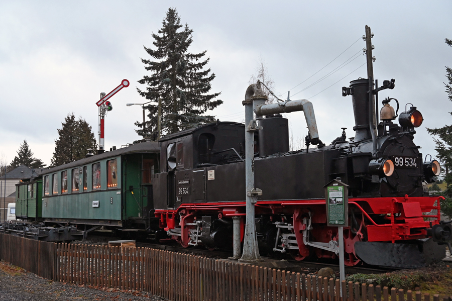 Hinter dessen Gruppe liegen schweißtreibende Tage. „Wir haben die im Bahnhofsgelände abgestellte Schmalspurlok der Reihe IV K 99 534 aufgearbeitet“, erklärt Ronald Klitzsch. „Rund 500 Stunden haben wir in unserer Freizeit für dieses technische Zeitzeugnis hineininvestiert. Unser Schmuckstück rollte früher auf dem hiesigen Schmalspurnetz. Für rund 800 Euro wurde frische Farbe aufgetragen, vom Zahn der Zeit abgenagte Schadstellen aufgehübscht. Zum Adventsfest dürfen Besucher wieder in unseren ebenso betagten Waggons Platz nehmen, die Hutzenabende an Bord sind längst kein Geheimtipp mehr.“ Im kommenden jahr wollen die Modellbauer daran erinnern, dass die Dampflok im Mai 1976 vor 50 Jahren hier ihren letzten Stellplatz erhalten hat. (hy)